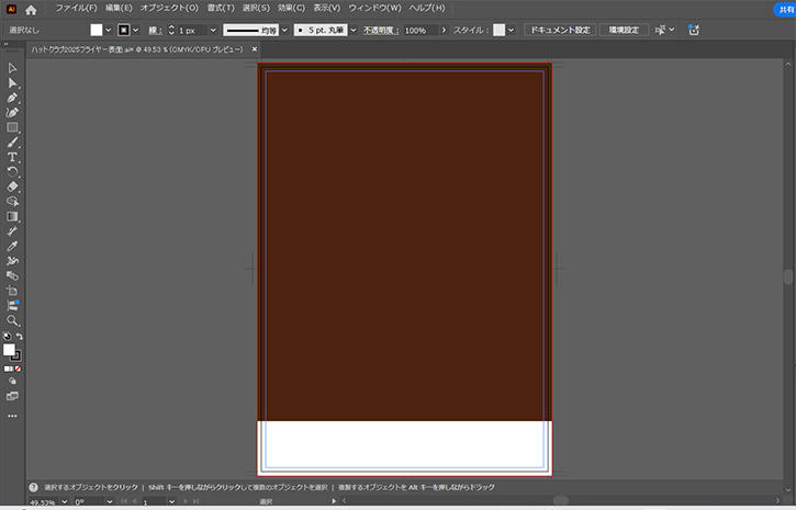 DEC 07 2024 創作日誌 フライヤー制作Part2。 さて、前回の続きです。 前回でA4サイズの土台を作って、トリムマーク&内側ガイドまで入れましたので、いよいよ本格的な制作に入っていきます。 上記画像のように、まずは背景に長方形をセット。 サイズは上の長方形が216×263、下の長方形が216×40。 ちょっと先行公開にはなりますが、作品を配置。 ベースにする作品は、エゾシマリスをモデルにした「花森のひととき」。 実物は来年5月に公開するので、皆様の御来場、心よりお待ち申し上げております。 で、画像を配置して、適当な大きさの正円でクリッピングマスクを掛けて、画像は完成。 画像サイズは216mm×176mmにトリミング済み。 次回から、いよいよ文字を載せていきます。 それでは、また。 Post Share Hatena LINE RSS feedly Pin it note 投稿者: Kyosuke Haikawa創作日誌 さて…。 フライヤー制作Part3。