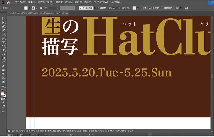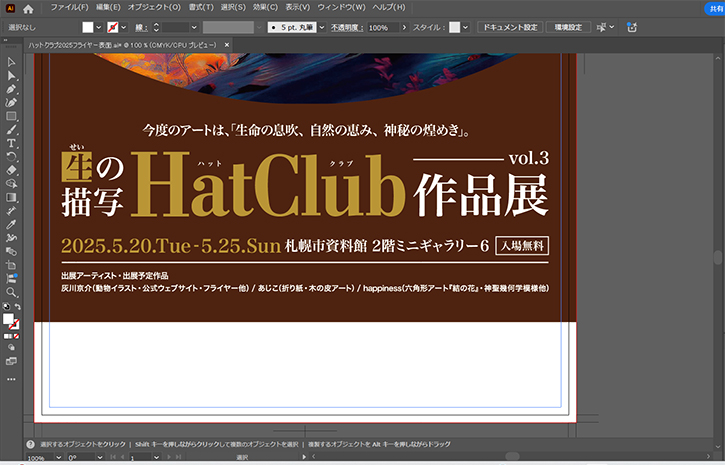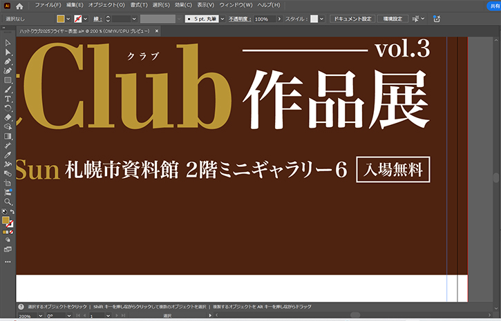 DEC 17 2024 創作日誌 フライヤー制作Part4。 ブログを御覧の皆様、如何お過ごしでしょうか? リーダーの灰川です。 さて、前回まででタイトルが出来たので、今回はタイトル下を制作していきたいと思います。 日程の文字組み。 文字間の間隔が乱れると、途端に見栄えがおかしくなるので、拡大して慎重に文字組み作業。 文字サイズは24Q。 続いて会場。 漢字と英数字の大きさやバランスが崩れないよう、ここも拡大しながらの作業。 で、区切り線(というか罫線)を引いておきます。 今回の罫線幅は0.5mm。 ちょっとだけ目立たせたいので、太めにしておく。 最後に、自分達の名前を入れて、っと…。 ここも、英語と漢数字のバランスや、文字間隔がおかしくならないように注意して、上半分は終了。 下の文字組み作業も同様。 という訳で、次回はフライヤー右下に掲載されているQRコードのお話なんかをしてみたいな、と。 それでは、また。 Post Share Hatena LINE RSS feedly Pin it note 投稿者: Kyosuke Haikawa創作日誌 フライヤー制作Part3。 そうだ、QRコードの話をしよう。