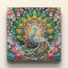 羽や尾に施された精緻な装飾は、雪の結晶や星のような煌めきを放ち、作品全体に神聖で崇高な空気感をもたらしています。鳥の周囲を彩るアラベスク調のモチーフとビーズの光は、「希望」「癒し」「魂の純粋さ」といった象徴を内包し、観る方の心を静かに包み込みます。