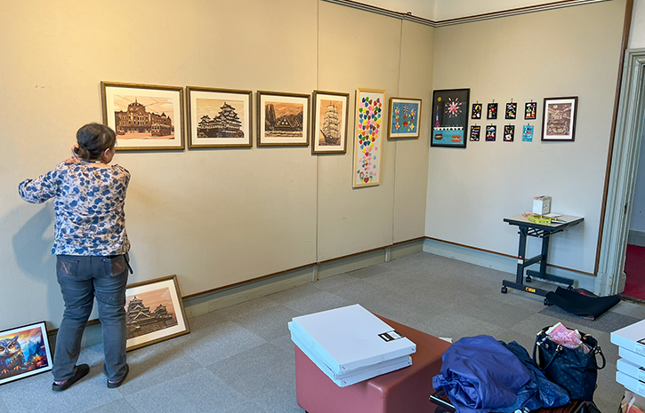 MAY 19 2025 創作日誌 会場設営。 ブログを御覧の皆様、いかがお過ごしでしょうか? リーダーの灰川です。 さて、気がつけば第三回作品展”FOREST CHANT~神秘の森に住む不思議な住人達”も明日から開幕、ということで、設営作業に突入! はい、もぬけの殻のミニギャラリー6。 この状態からメンバー三人で喧々諤々やりながら、PM5:00までに設営を終わらせる訳であります。 要領よく作品を壁に取り付けていくあじこさん。 後ろから写真を撮りつつ、作品同士の間隔チェックもやってます。 あじこさん、この後私用の為PM3:00過ぎに退却。 あじこさんが退却する少し前に、遅れてhappinessさんが到着。 なんと、東京→羽田空港→新千歳空港→札幌市資料館という約900kmの大移動! で、ようやく、三人でセッションしながらの設営。 作品展示するのに脚立とワイヤー使用。 久しぶりに使ったワイヤー&フックにちょっぴり苦戦。 この後テーブルに置く作品もセットして、無事PM5:00までに設営作業は完了しました、とさ。 ということで、第三回作品展、明日から開幕です! メンバー三人は土日に勢揃いして在廊します。 皆様の御来場、心よりお待ち申し上げております。 それでは、また。 Post Share Hatena LINE RSS feedly Pin it note 投稿者: Kyosuke Haikawa創作日誌 最後の作品、届く。 搬入。
